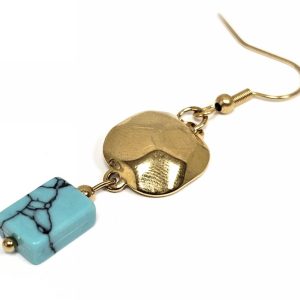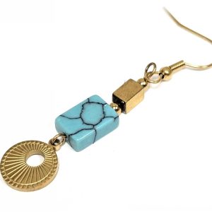 Σκουλαρίκια Πέτρα ατσάλι 316L, με τυρκουάζ σε χρώμα Χρυσαφί