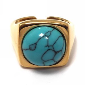 Δαχτυλίδι Πέτρα 316L, με τυρκουάζ σε χρώμα Χρυσαφί