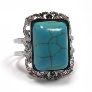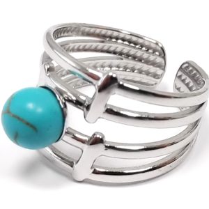 Δαχτυλίδι Πέτρα 316L, με τυρκουάζ σε χρώμα Ασημί