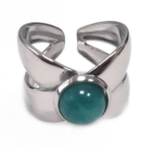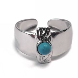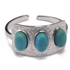 Δαχτυλίδι Πέτρα 316L, με τυρκουάζ σε χρώμα Ασημί