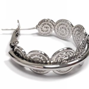 Σκουλαρίκια Ατσάλι 316L, κρίκος με σπείρα σε χρώμα Ασημί, Διάμετρος 2,5cm