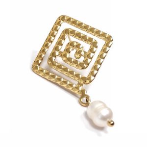 Σκουλαρίκια Ατσάλι 316L, μαίανδρος με μαργαριτάρι σε χρώμα Χρυσαφί
