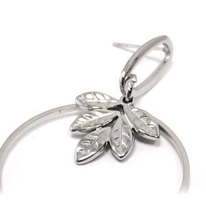 Σκουλαρίκια Ατσάλι 316L, κρίκος με φύλλο σε χρώμα Ασημί