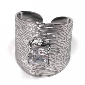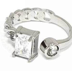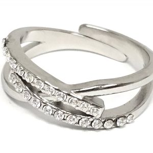 Δαχτυλίδι Ατσάλι 316L, με στρας σε χρώμα Ασημί