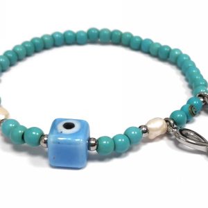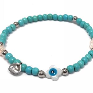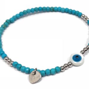 Βραχιόλι Ατσάλι 316L, με τυρκουάζ και μάτι σε χρώμα Ασημί