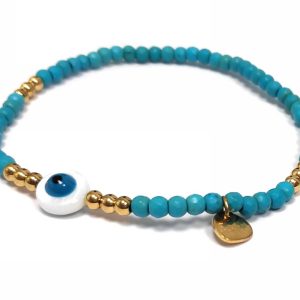 Βραχιόλι Ατσάλι 316L, με τυρκουάζ και μάτι σε χρώμα Χρυσαφί