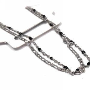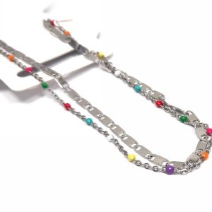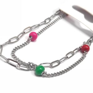 Βραχιόλι Ποδιού Ατσάλι 316L, διπλή αλυσίδα με πολύχρωμες χάντρες σε χρώμα Ασημί