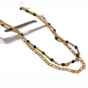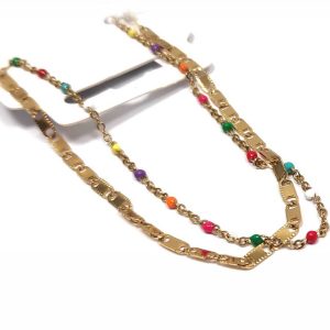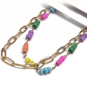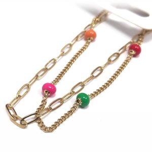 Βραχιόλι Ποδιού Ατσάλι 316L, διπλή αλυσίδα με πολύχρωμες χάντρες σε χρώμα Χρυσαφί