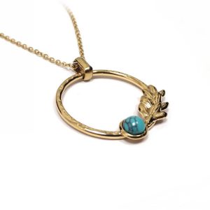 Κολιέ Πέτρα 316L, αλυσίδα με τυρκουάζ σε χρώμα Χρυσαφί