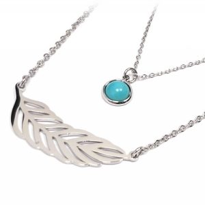 Κολιέ Πέτρα 316L, διπλή αλυσίδα με τυρκουάζ σε χρώμα Ασημί, Μήκος 45cm