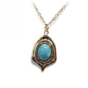 Κολιέ Πέτρα ατσάλι 316L, αλυσίδα με τυρκουάζ σε χρώμα Χρυσαφί