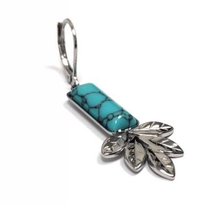 Σκουλαρίκια Πέτρα 316L, με τυρκουάζ σε χρώμα Ασημί