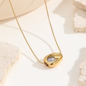 Κολιέ Πέτρα ατσάλι 316L, αλυσίδα με τυρκουάζ δόντι και κρυσταλλάκια σε χρώμα Χρυσαφί, Μήκος 40cm