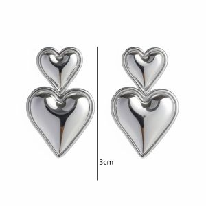 Σκουλαρίκια Διπλή Καρδιά από Ατσάλι - ΑσημίA2047B