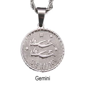 Ατσάλινο Κολιέ Με Ζώδιο (Δίδυμος) – Ασημί