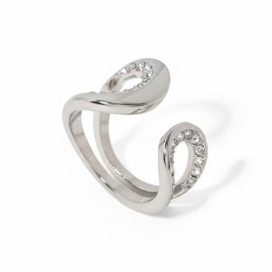 Ρυθμιζόμενο Δαχτυλίδι Ατσάλινο με Κυματιστό Σχέδιο και Στρας Ασημί Χρώμα
