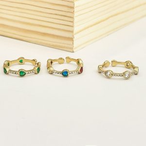 Ατσάλινο Δαχτυλίδι Με Χρωματιστές Πέτρες – Χρυσό Πράσινο