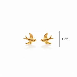 Σκουλαρίκια Ατσάλι Χελιδόνι Χρυσό Χρώμα Stainless Steel Swallow Stud Earrings Gold Tone