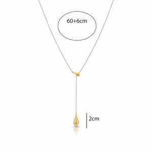 Ατσάλινο Μακρύ Κολιέ με Διπλή Σταγόνα Δίχρωμο