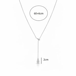 Ατσάλινο Μακρύ Κολιέ με Διπλή Σταγόνα Ασημί Χρώμα