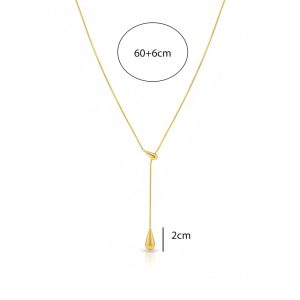 Ατσάλινο Μακρύ Κολιέ με Διπλή Σταγόνα Χρυσό Χρώμα