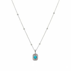Ατσάλινο Κολιέ Ματάκι Με Πέτρα Φίλντισι – Ασημί