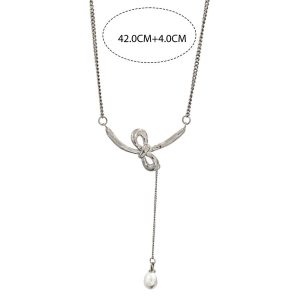 Ατσάλινο Κολιέ Με Φιόγκο Και Κρεμαστή ΠέρλαA41011