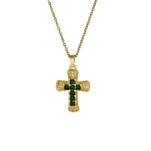 ς Κομψός Σταυρός Με Πράσινες Ζιργκόν Πέτρες – Χρυσό