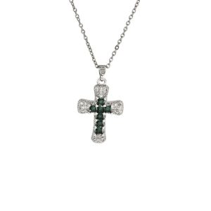 ς Κομψός Σταυρός Με Πράσινες Ζιργκόν Πέτρες – Ασημί
