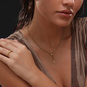 Ατσάλινο Κολιέ με Σχέδιο Φίδι και Ζιργκόν – Χρυσό