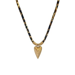 Ατσάλινο κολιέ με μακρόστενη καρδιά σε leopard κορδόνι Stainless steel necklace with long heart pendant on leopard cordA70006