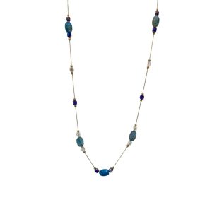 Μακρύ κολιέ με μπλε και μωβ χάντρεςA59005