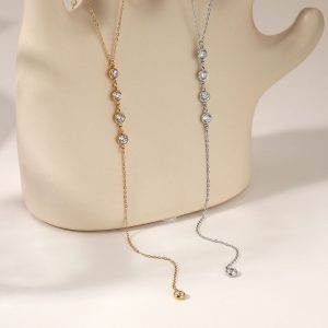 Μακρύ ατσάλινο κολιέ με ζιρκόνια