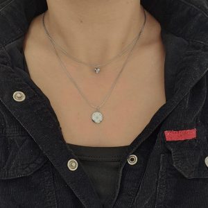 Κολιέ με διπλή αλυσίδα και καρδιά – Ασημί