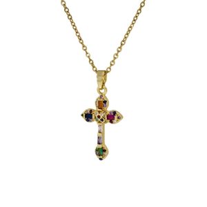Μενταγιόν Σταυρός Με Πολύχρωμες Πέτρες Ζιργκόν – Χρυσό
