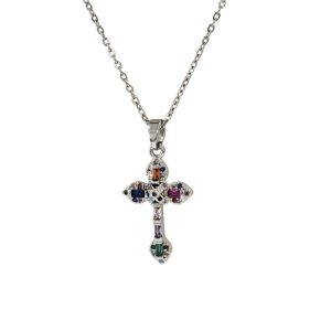 Μενταγιόν Σταυρός Με Πολύχρωμες Πέτρες Ζιργκόν – Ασημί