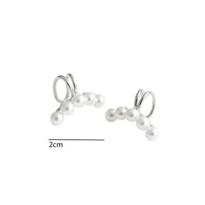 Σκουλαρίκια Ατσάλι Ασημί Κλιπ Με Μαργαριτάρια