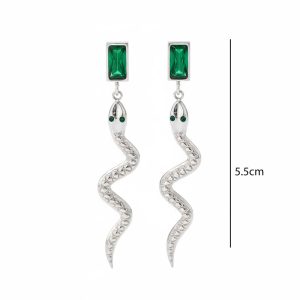 Σκουλαρίκια Ατσάλι Ασημί Φίδι με Πράσινο Κρύσταλλο
