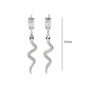 Σκουλαρίκια Ατσάλι Ασημί Φίδι με Κρύσταλλο