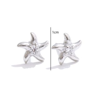Σκουλαρίκια Ατσάλι Αστερίας με Στρας