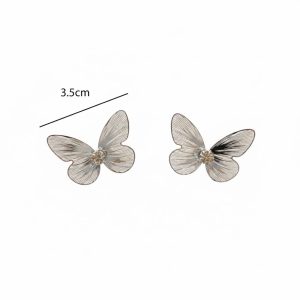 Σκουλαρίκια Ατσάλι Ασημί Πεταλούδα Στυλ Σύρμα με Λευκή Πέτρα Stainless Steel Silver Butterfly Wire Style Earrings