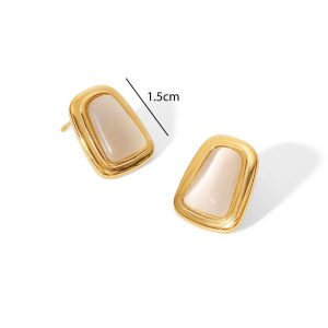 Σκουλαρίκια Ατσάλι Χρυσά με Μπεζ ΠέτραA3448-1