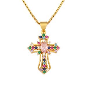 Ατσάλινο Κολιέ με Κρεμαστό Σταυρό Πολύχρωμες ΠέτρεςA64009