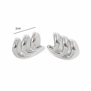 Σκουλαρίκια Ατσάλι Τριπλό Κυματιστό Σχέδιο Ασημί