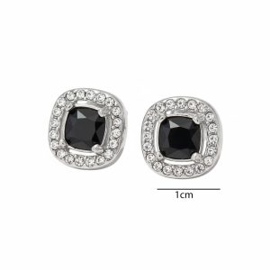 Σκουλαρίκια Ατσάλι Τετράγωνο Μαύρη Πέτρα & Στρας Ασημί
