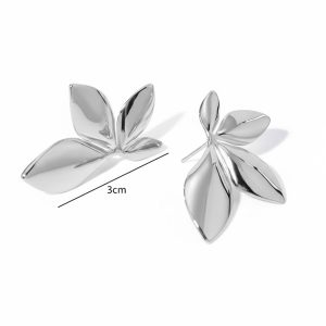 Σκουλαρίκια Ατσάλι Φύλλα Ασημί