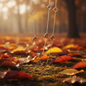 Ατσάλινο Μακρύ Κολιέ με Τετράφυλλα Στοιχεία – Χρυσό
