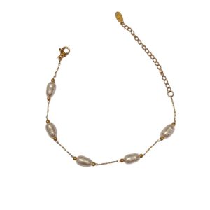 Χρυσό ή Ασημί Βραχιόλι με Οβάλ Μαργαριτάρια – Χρυσό