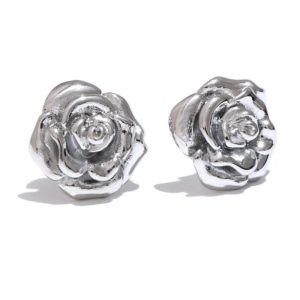 Σκουλαρίκια Ατσάλινα Καρφωτά Σε Σχήμα Τριαντάφυλλο – Ασημί