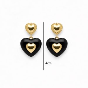 Ατσάλινα Κρεμαστά Σκουλαρίκια Καρδιές Χρώμα Χρυσό με Μαύρο